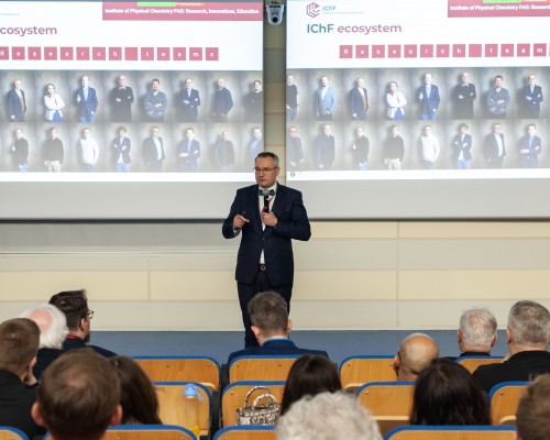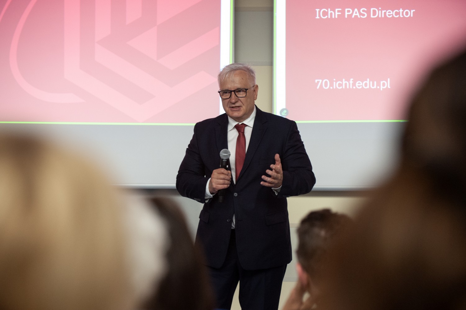 Prof. Marcin Opałło summarized the seventy-year history of the Institute in the lecture "70 years of IChF in a nutshell." Then, Director Adam Kubas, in the presentation "IChF Today and Tomorrow", outlined the current challenges, strategic goals and the role that the Institute currently plays in the national and international science system. He also presented the current structure of the unit and the vision for its further development.