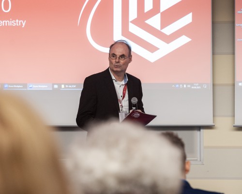 After lunch the guests returned to the lecture hall for the third session, devoted to scientific research. The session was chaired by Prof. Joanna Niedziółka-Jönsson. Prof. Jacek Waluk presented a reflection based on almost five decades of his own experience at the Institute. Then Prof. Stefan Bräse presented a lecture on “Digital chemistry - a trip into the blue,” Prof. Elena Ferapontova talked about the application of electrochemical methods in cancer and infection diagnostics presenting “Antimicrobials & Cancer Diagnostics Through an Electrochemical Lens,” and Prof. Aleksei Aksimentiev presented “Toward predictive modeling of bimolecular systems, from physical chemistry of polymers to viruses and organelles.”