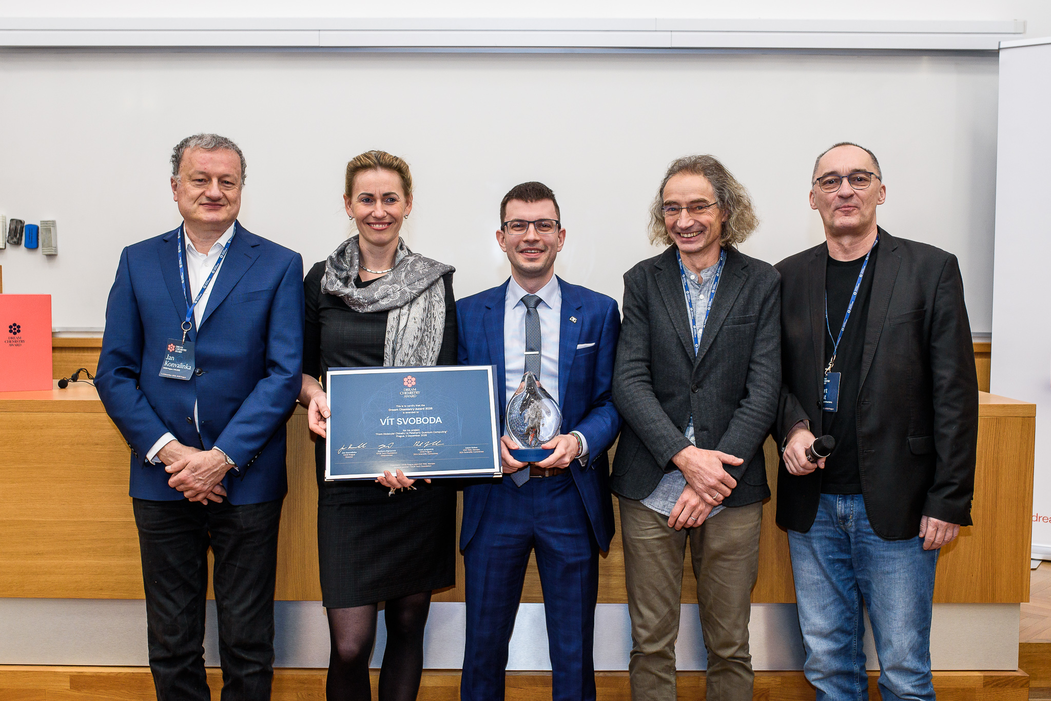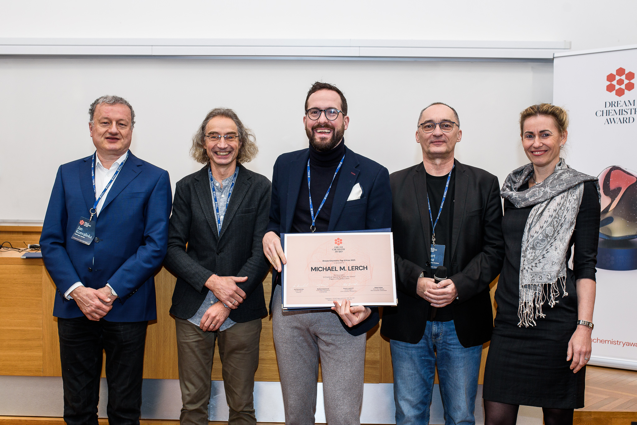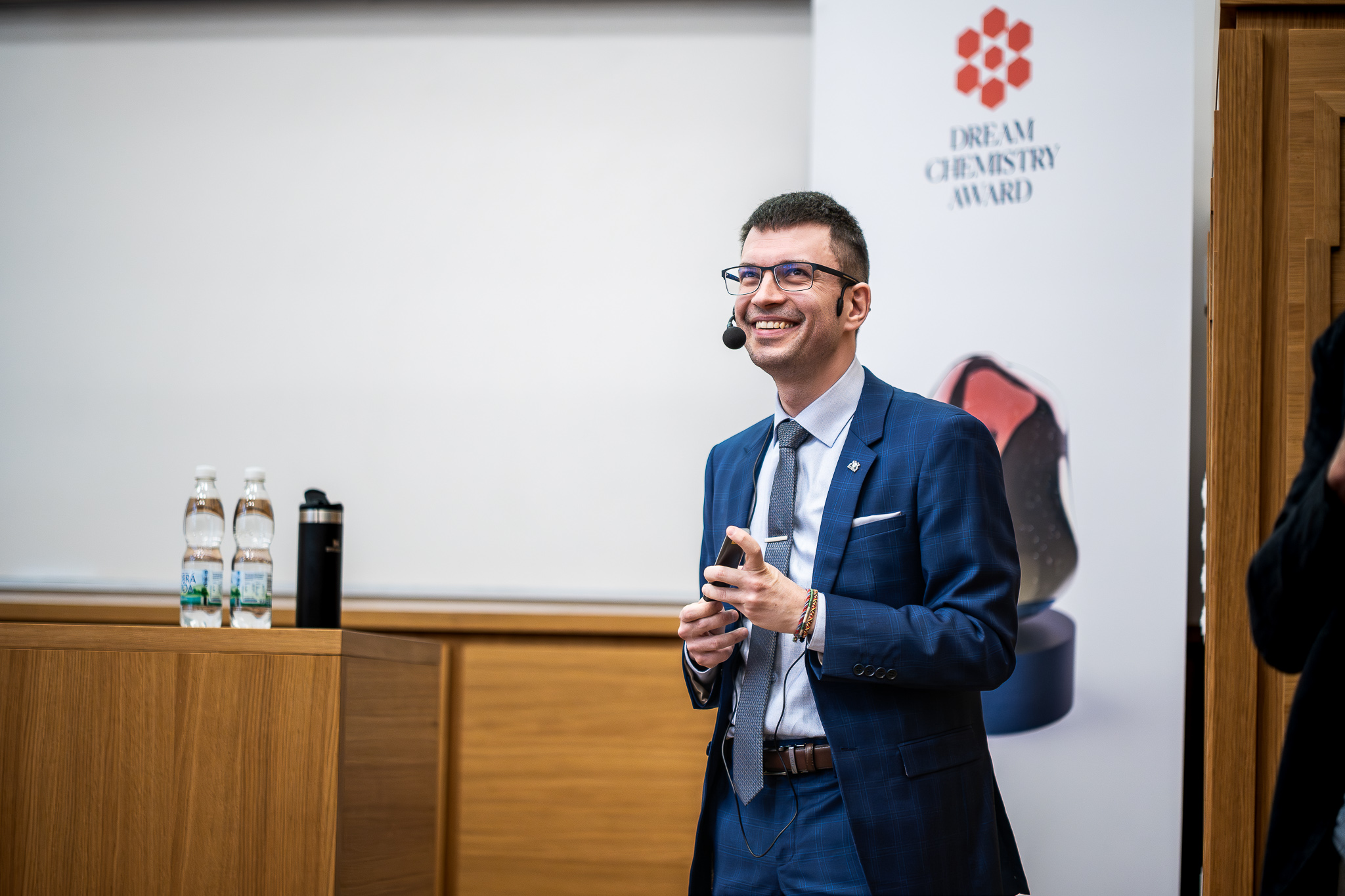 The DCA 2025 was presented to Dr. Vít Svoboda from the Department of Physical Chemistry at the University of Chemistry and Technology in Prague (UCT Prague). His winning proposal, “From Molecular Chirality to Petahertz Quantum Computing,” outlines a radically new approach to quantum computing. Instead of relying on conventional electronics, the concept explores the use of chiral (mirror-asymmetric) molecules controlled by ultrafast laser pulses, combining molecular structure, electron spin, light, and ultrafast optics into a new computational paradigm. This achievement marks the first time in the history of the Dream Chemistry Award that the main prize has been awarded to a researcher from the Czech Republic.