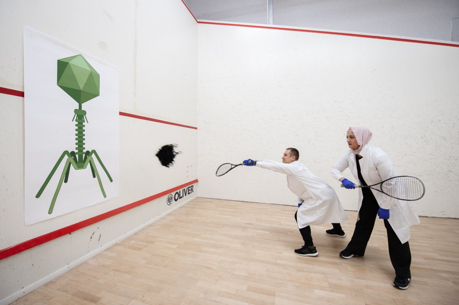 Understanding the mechanisms that stand behind the bacteriophages' inactivation required interdisciplinary approaches combining the use of methods from different fields from virology to polymer chemistry. That enabled the design of surface attachment through functional NPs with controlled size and charge. Integration of diverse fields led to the development of a solution that can help to control phage contamination in laboratories and technological processes. Demonstrated work illustrates how complex biological challenges are addressed through open-minded researchers and cross-disciplinary collaboration.