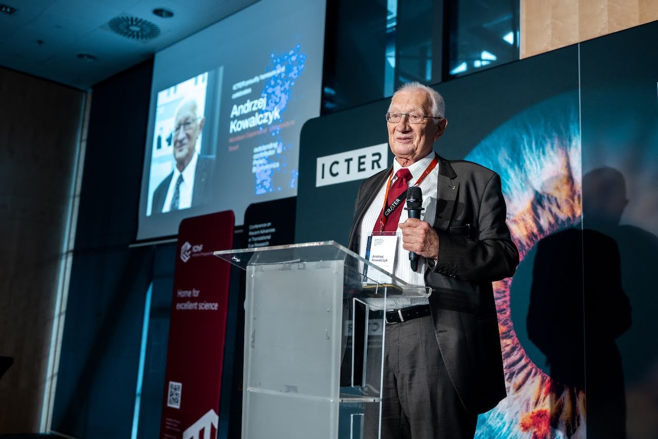 During a special anniversary session on the third day of the conference, Prof. Maciej Wojtkowski honored Prof. Andrzej Kowalczyk for his pioneering contribution to the development of optical imaging in Poland. In his speech, Prof. Wojtkowski emphasized that it was Prof. Kowalczyk who had created a research environment in which spectral optical tomography technology could be developed – a breakthrough in the diagnosis of eye diseases and a milestone in modern ophthalmology. Prof. Kowalczyk's openness to interdisciplinarity and trust in young scientists enabled the development of independent research, which today forms the foundation of ICTER's achievements. After the ceremonial presentation of the commemorative statuette, Prof. Kowalczyk expressed his gratitude for the award, recalling the beginnings of their joint research work. This moment, linking the history of Polish optical research with its clinical applications, gave the conference a unique, intergenerational character.