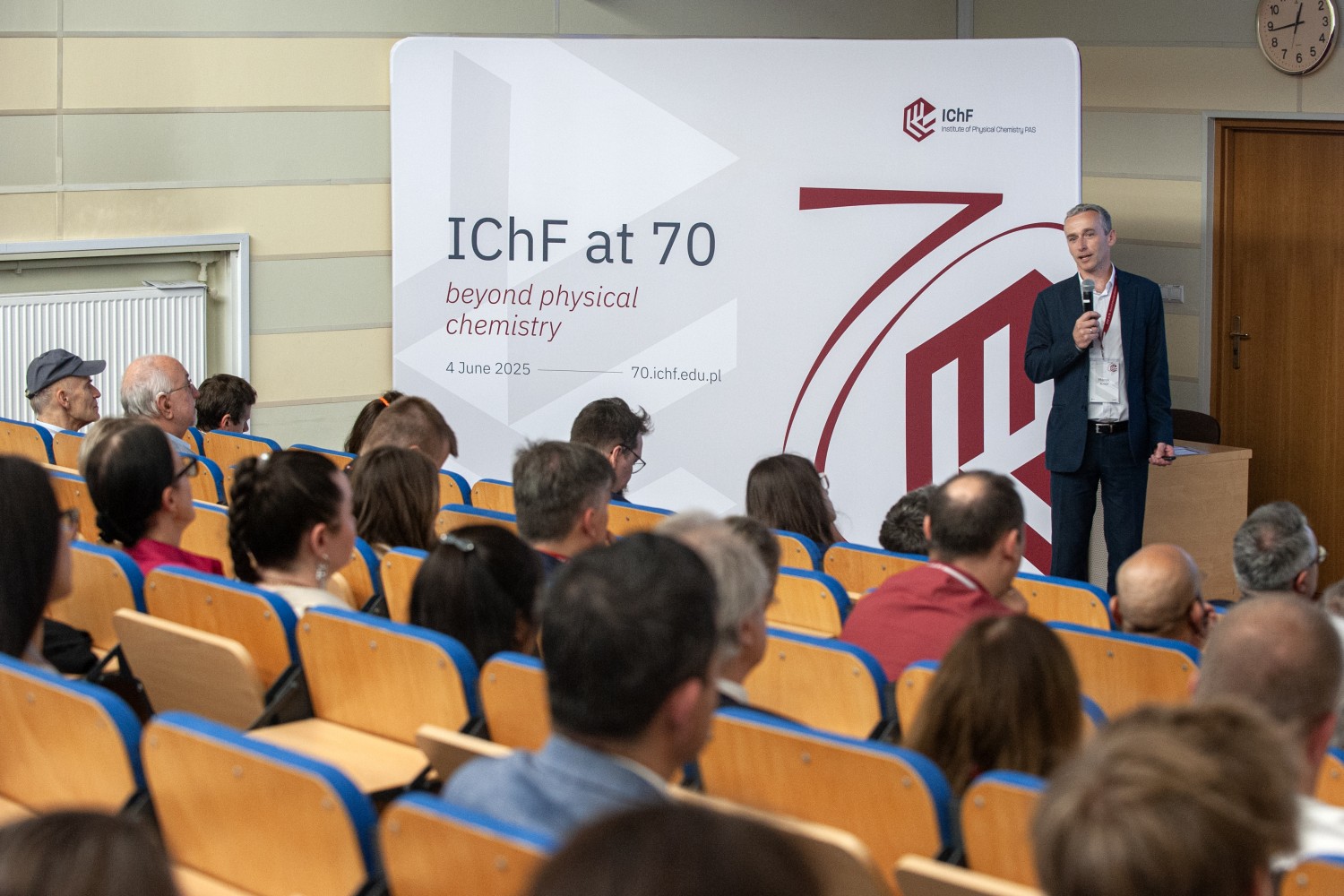 Dnia 4 czerwca 2025 roku w Warszawie odbyły się uroczyste obchody 70-lecia Instytutu Chemii Fizycznej Polskiej Akademii Nauk (IChF). Wydarzenie jubileuszowe zgromadziło obecnych i emerytowanych pracowników, współpracowników i przyjaciół Instytutu, a także przedstawicieli instytucji państwowych, samorządowych oraz środowiska naukowego – zarówno z Polski, jak i z zagranicy.