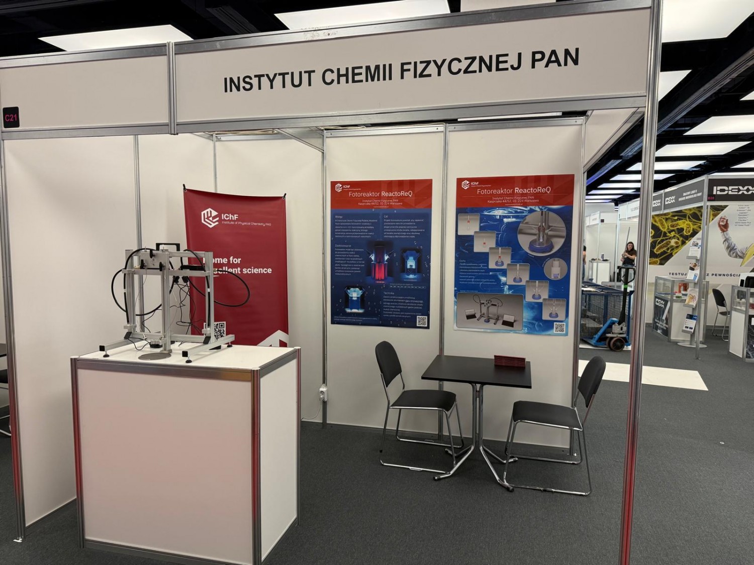 W dniach 18-19 marca 2026, w poznańskim centrum konferencyjnym, odbyły się targi wyposażenia i technologii laboratoryjnych Labs Expo 2026, na których grupa naukowców z naszego Instytutu (prof. dr hab. inż. Juan Carlos Colmenares, dr Marta Paszkiewicz-Gawron oraz dr inż. Dariusz Łomot) zaprezentowała fotoreaktor „ReactoReQ”.