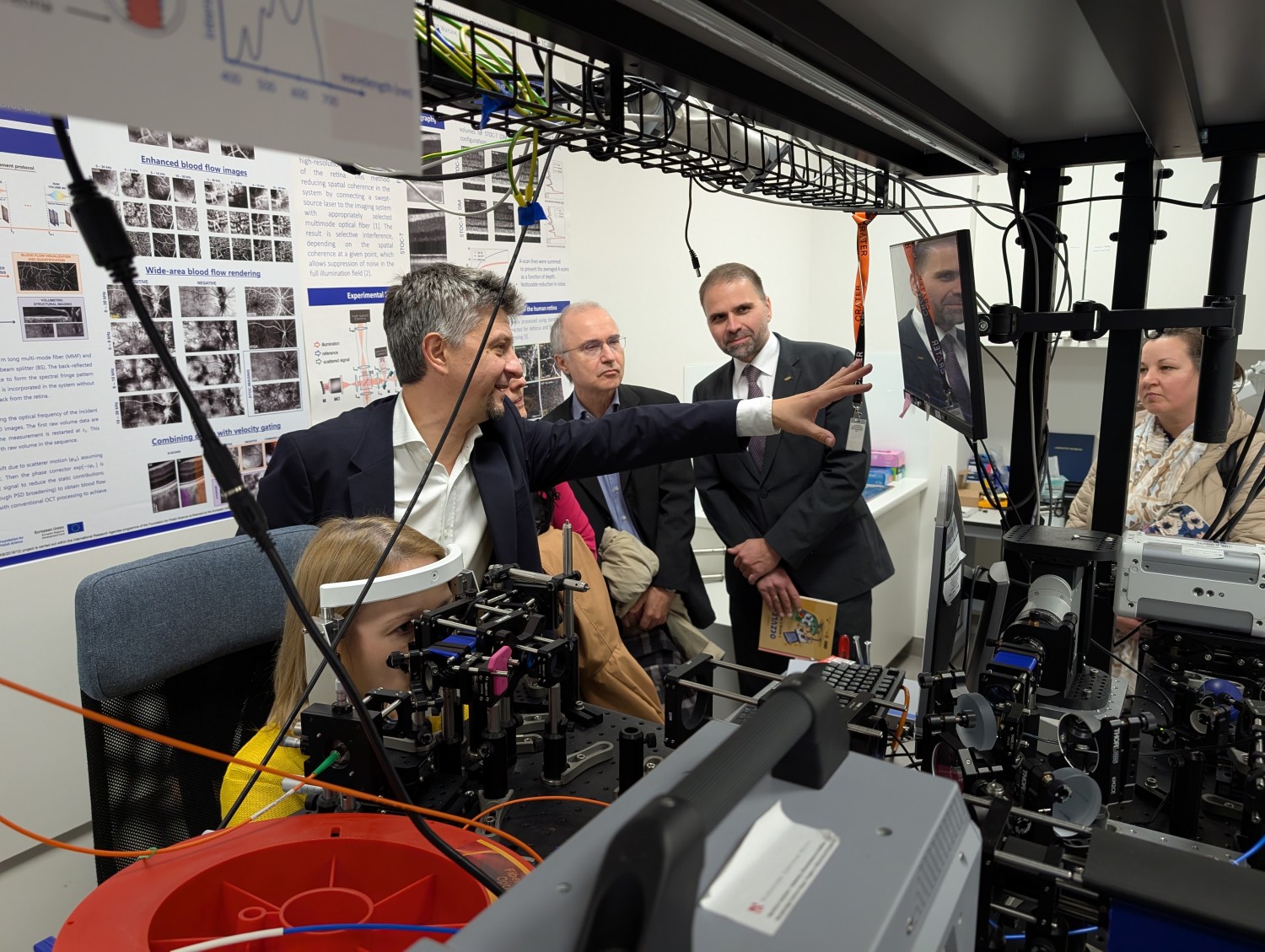 Program wizyty od strony naukowej obejmował wystąpienie prof. Macieja Wojtkowskiego, dyrektora ICTER, oraz prezentacje nowatorskich technologii optycznych, robotycznych oraz terapii o podłożu genowym i biologicznym, zaprezentowane przez dr. Karola Karnowskiego, dr. Andrzeja Foika, dr. Humberto Fernandesa, dr Katarzynę Komar i współpracowników. Goście mieli okazję zobaczyć m.in. prototyp skonstruowany w spółce spin-off IChF PAN InCellVu oraz system widzenia dwufotonowego, które ilustrują, jak badania fotoniczne mogą przekształcać diagnostykę i ochronę wzroku.