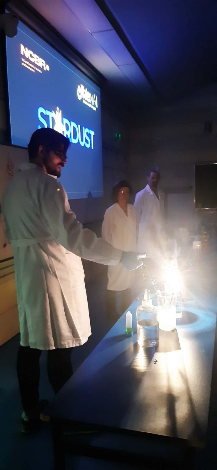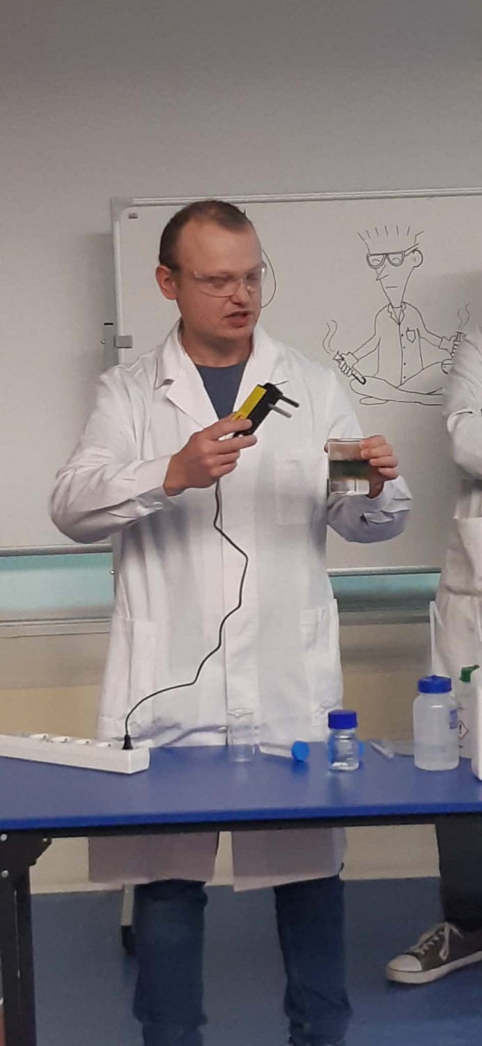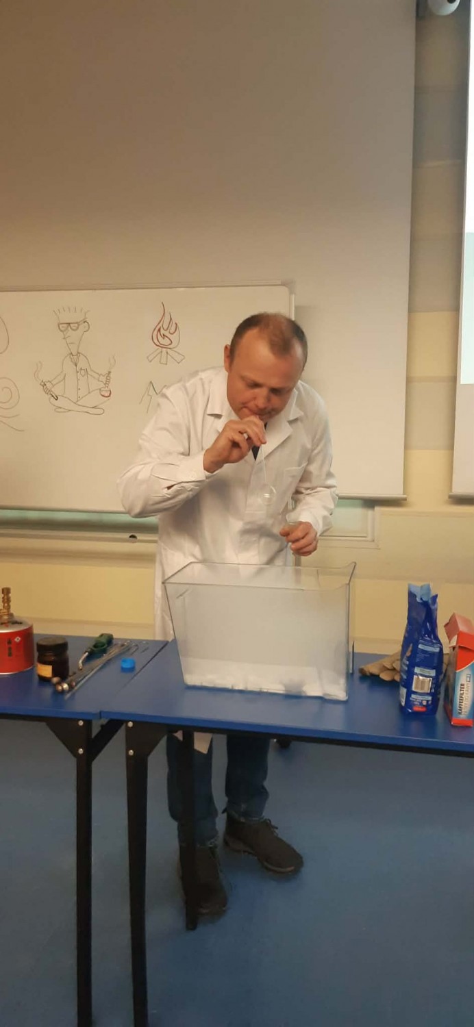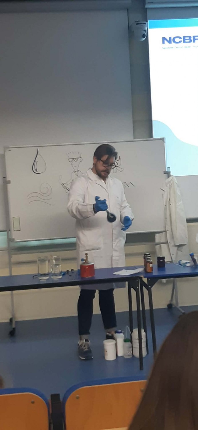 Warto też wiedzieć, że Instytut od wielu lat dwa razy w miesiącu organizuje lekcje z doświadczeniami i dużą liczbą pokazów – dotyczących różnych stanów skupienia – skierowane do uczniów szkół średnich. Warsztaty prowadzone przez dr. Romana Luboradzkiego, kierownika Laboratorium Rentgenowskiej Analizy Strukturalnej w IChF, cieszą się dużą popularnością, a szkoły zapisują się nawet na pół roku wcześniej. Nauczycieli chemii zainteresowanych warsztatami prosimy o kontakt pod adresem e-mail: rluboradzki@ichf.edu.pl.