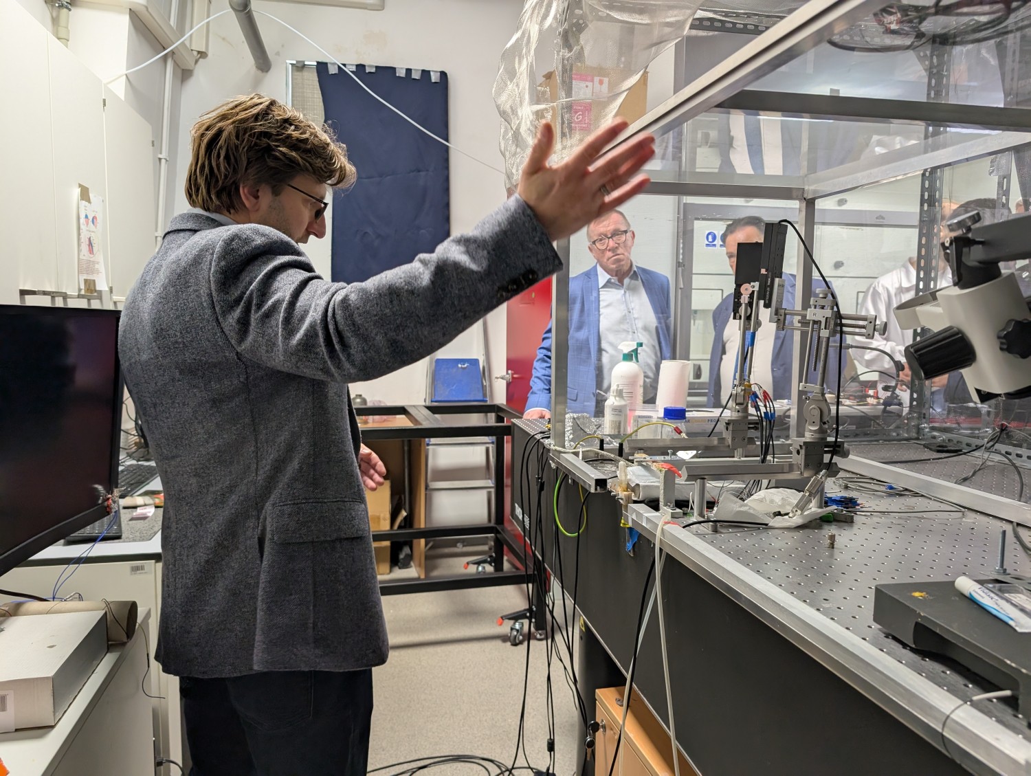 Po dyskusji delegacja zwiedziła laboratoria zaprezentowanych grup, by jeszcze pełniej zapoznać się z ich praktycznym funkcjonowaniem.