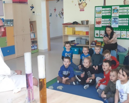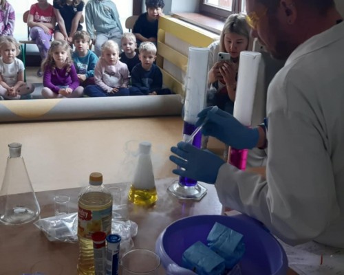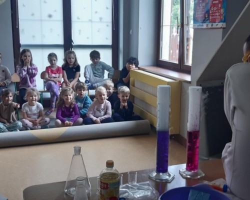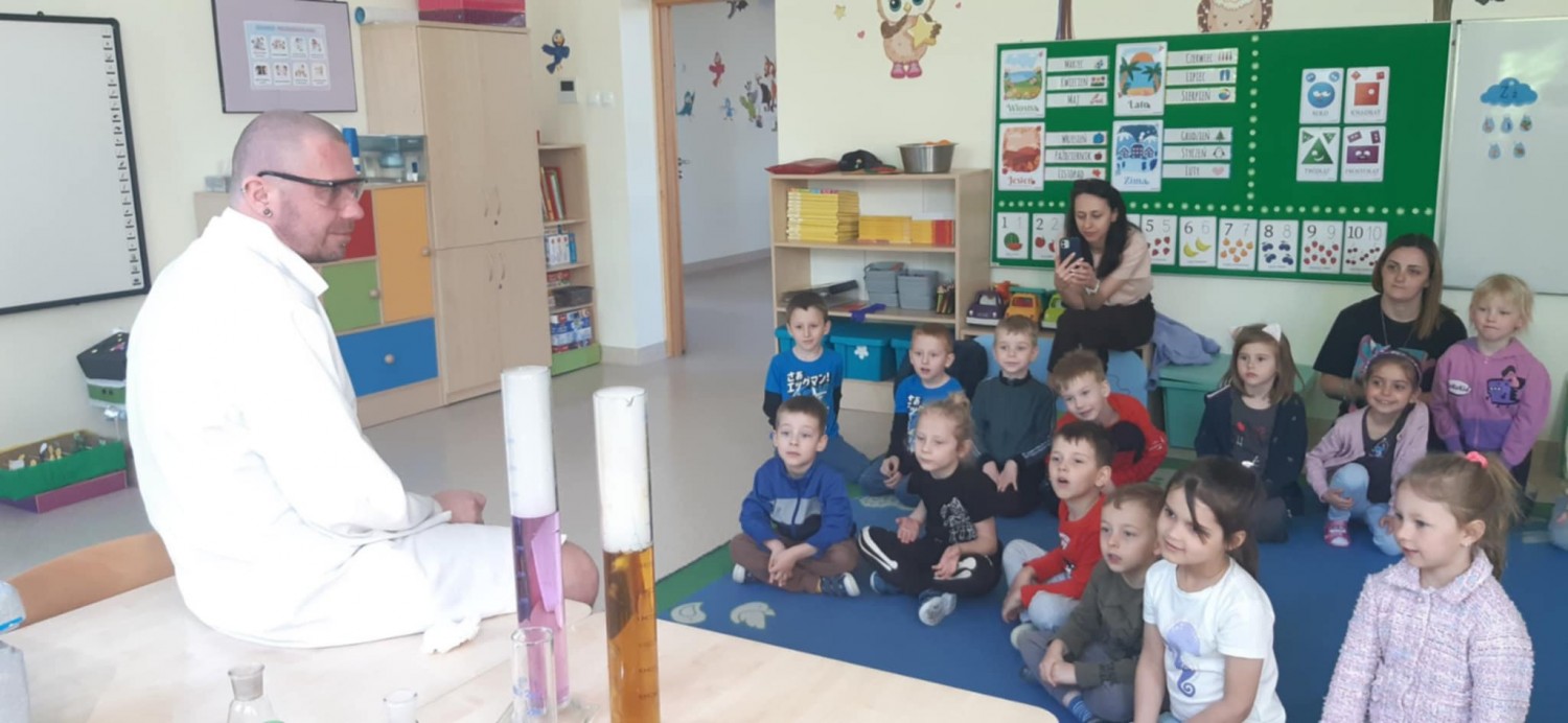Dla najmłodszych adeptów chemii zespół IChF przygotował warsztaty w przedszkolach, szkołach podstawowych, a także na terenie Instytutu. Beata Pleskot i Tomasz Andryszewski, wspierani przez Konrada Giżyńskiego, prezentowali doświadczenia takie jak: dmuchanie balonów sodą i octem, reakcje pH, podwodny wulkan, bańka w bańce czy eksperymenty z pieprzem. Pokazy te miały charakter interaktywny i spotkały się z entuzjazmem najmłodszych uczestników. Odbyły się następujące wydarzenia: