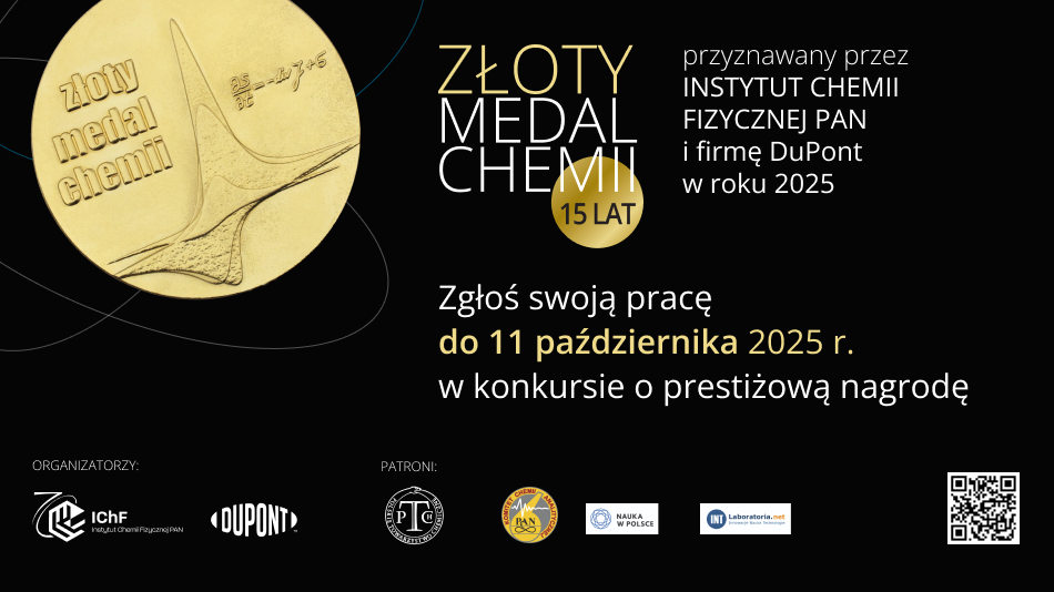 Jest nam ogromnie miło ogłosić rozpoczęcie 15 edycji prestiżowego konkursu organizowanego przez Instytut Chemii Fizycznej PAN (IChF PAN) w Warszawie oraz firmę DuPont. Autorzy najlepszych prac licencjackich lub inżynierskich w dziedzinie chemii oraz z pogranicza chemii i biologii lub chemii i fizyki, mają szanse po raz kolejny otrzymać Złoty Medal Chemii.